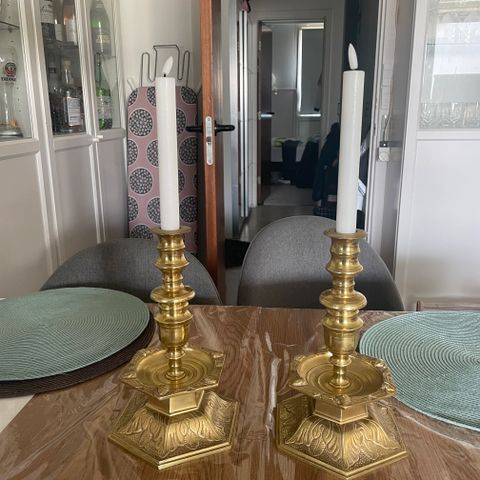 2 stks grå lysestager, den éne (nr 7) står der “Nothing is impossible”, den anden (nr 23) står der “Light me up”.