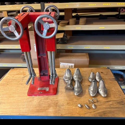 Sæt bestående af vintage skomager skoblokker inklusive sko læste både til herre og dame sko. Værktøjet er velegnet til at gøre sko større i længe og brede og formning af sko. Materialet er metal, og det har et robust design til professionel brug. Varen stå i Roskilde men kan godt hente i Ishøj efter aftale.
