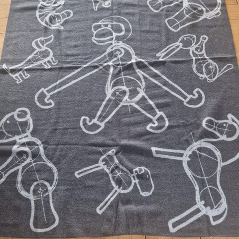 Kay Bojesen Plaid Blå 80 x 120 cm, Plaid / Tæppe Ny og uåbnet, med illustrationen af Kay Bojesens elskede abe er skabt i 100 % lammeuld. Plaiden er vendbar med den modsatte farve på den anden side, fordi den er vævet efter jacquard-princippet.