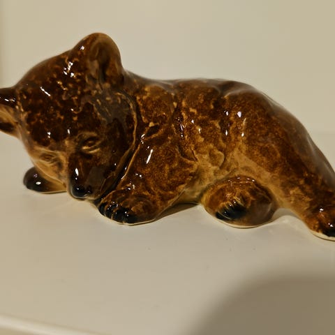 Tre charmerende små vintagefigurer i resin/keramik, formet som søde bamser – alle siddende på et lille toilet i hver deres humoristiske positur. De måler ca. 6–7 cm i højde. Figurerne er håndmalede med fine detaljer i tøj, ansigtsudtryk og små accessoires såsom avis og en klassisk nathue. Den ene bjørn sidder tydeligt og presser, hvilket giver et ekstra komisk udtryk.