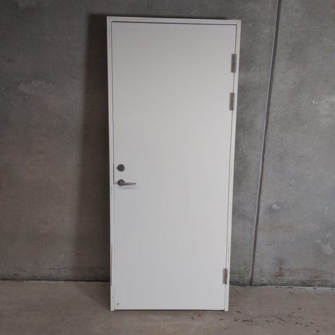 Indvendig dør 88,5x208cm i 121mm karm. Venstre hængslet. Der er monteret toiletbesætning. Produceret af SWEDOOR. Bemærk at bundstykke ikke medfølger. Har slid nederst på dørblad, stifthuller fra gerigter og brugsspor. Dimension B:88,5 X H:208 X D:12,1cm