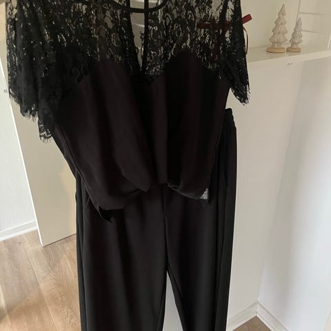 Flot buksedragt i lækker kvalitet. Med trykknapper og bindebånd i taljen. Med lommer