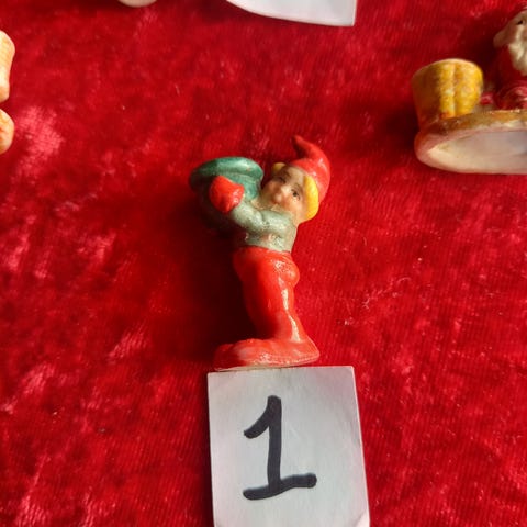 Sæt med diverse nissefigurer lavet af papir. Forskellige størrelser og motiver af nisser i farverige dragter. Kan anvendes til dekoration eller samling.