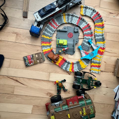 Turtles, Biker mice, GI joe, Zoobles, træværktøj, robot, biler