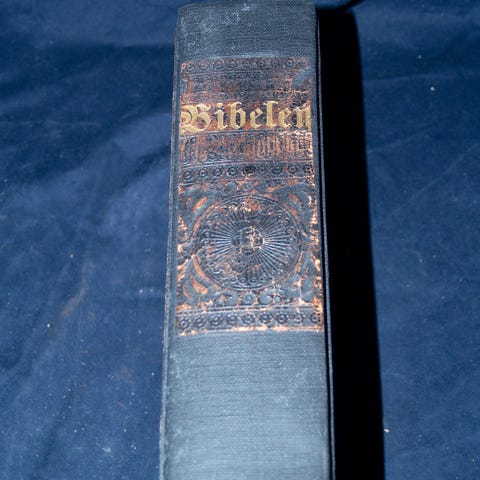Hvis man faktisk ønsker at læse denne oversættelse igennem, er dette eksemplar velegnet da den stadig er solid og kan ligge åbent på bordet. Kommer i æske. Æsken er dog noget medtaget, da den har beskyttet selve Bibelen i mere end et århundrede.