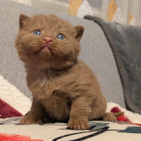 Også 100% British Shorthair, fuldt vaccineret, sund og rask. En rolig, kærlig og legesyg han med tæt pels og store, runde øjne – en smuk og typisk repræsentant for racen.