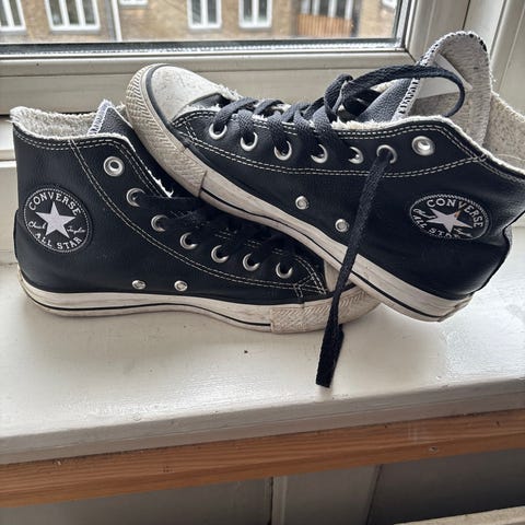 Converse All Star læder sneakers i sort farve, størrelse 36.