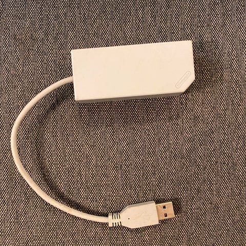 Adapter til Nintendo WII der gør det muligt at benytte sig af kablet internet.