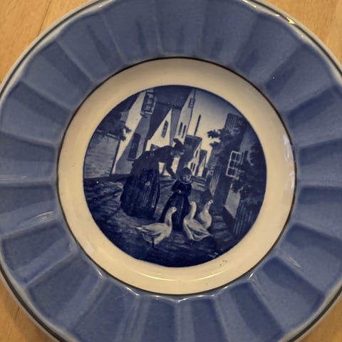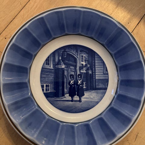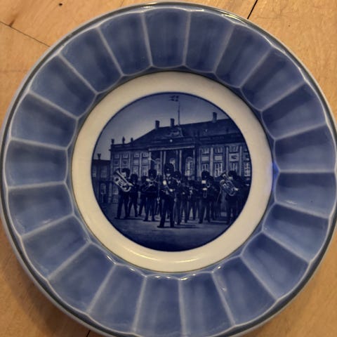 • Smukt blå/hvidt motiv med fiskere og kutter