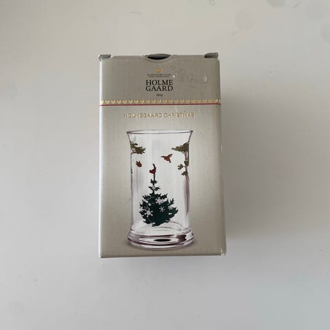 Holmegaard Juleglas 2000 glas med dekorative motiver af dansende figurer. Fremstillet i klart glas med fine detaljer.