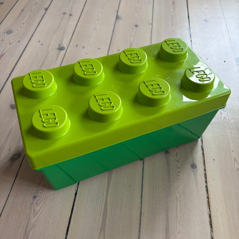 LEGO Belville opbevaringsbokse i farverne gul, grøn og sort. Bokse designet til opbevaring med LEGO-inspireret design på lågene. Kan bruges til organisering og opbevaring af småting.