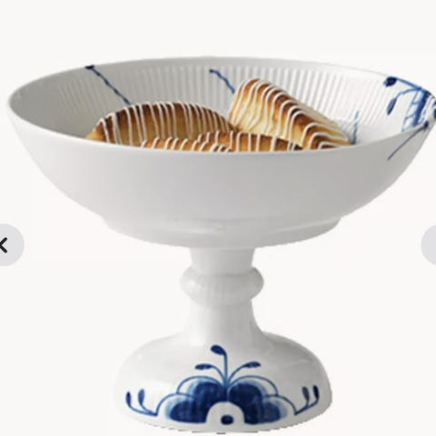 Jeg sælger en serveringsskål fra Royal Copenhagen, der er fuldkommen ny og stadig er i sin æske. Skålen måler 21 cm. i diameteren og kan rumme 1,8 L. Designeren bag er Karen Kjældgård-Larsen, og det er håndmalet porcelæn, som man kender det fra resten af Royal Copenhagen's produkter.