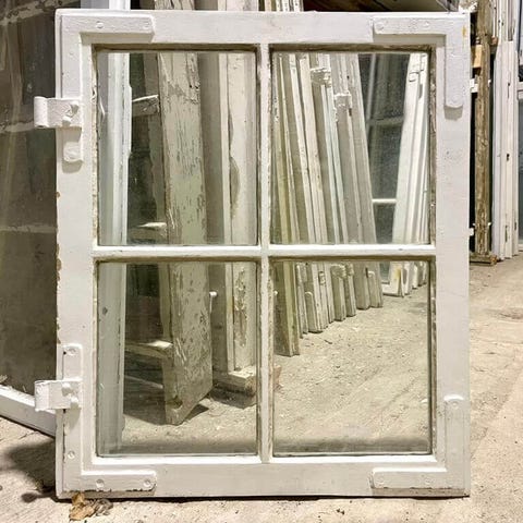 Original 6-ruders vinduesramme med matteret råglas og sjældent fine profiler indvendigt. Fremstår med sundt træværk samt afskallende maling og læs/manglende kit flere steder. Stammer fra Den Spanske Ambassade i København.