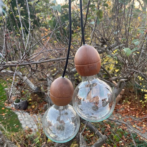Egetræsbøjlen, som fatningen hænger i, er ikke kun dekorativ, men også funktionel. Den gør det muligt at justere og rotere lyskilden, så du kan rette lyset i den ønskede vinkel.Detajler: