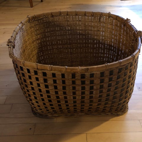 Fletkurv med håndtag fremstillet i naturfarvet CL rattan. Den har en diameter på 58, en højde på 47 cm, pris fast skal afhentes i Randers