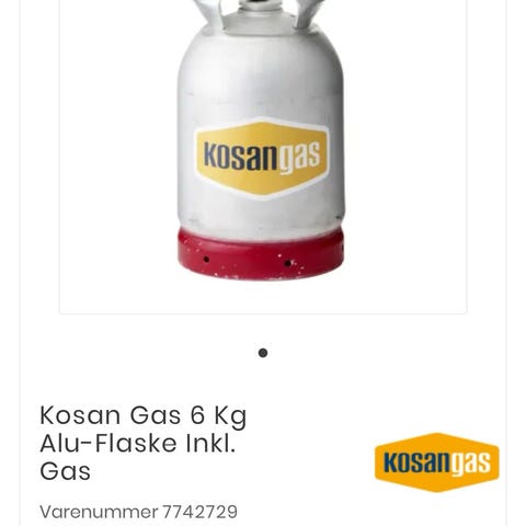 Gasflaske, Ny 2 kg Kosan gas returflaske med plombering, kan evt. bruges som backup til gasgrill. fast pris. 380 Kr.