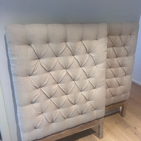 Illums Bolighus: sengegavle i massiv teak/eg med intakt flet. Passer til 80 cm brede madrasser. NY PRIS, 900 kr