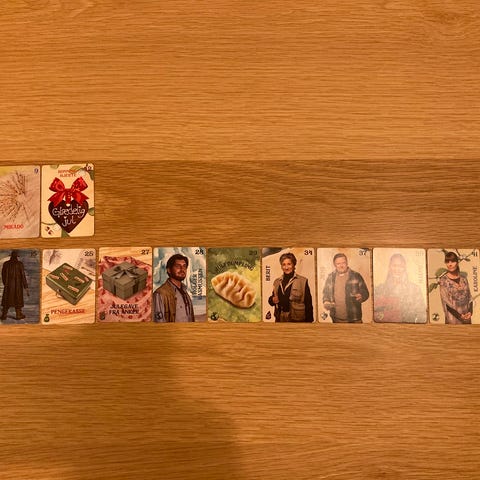 og så har jeg nr 6 valde og der er 28 stk og så har jeg nr 7 og der er 30 og det er tela og så har jeg nr 9 og det mikado og der er 21 stk og så har jeg nr 13 og det er Armbrøst og der er 23 stk og så har jeg nr 15 og der er 31 stk og så har jeg nr 20 og der er 6 stk tilbage og det er usynlig pind og så har jeg nr 21 nøddeflødeskive og der er 36 stk og så har jeg nr 26 det er drone og der er 25 stk og så har jeg nr 27 og det er jule gave fra Anker og der er 33 stk og så har jeg nr 28 som er Holger Rasmussen og der er 30 stk tilbage og så har jeg nr 29 og det er juledumpling og der er 25 stk og så har jeg nr 32 og der er gelines tørklæde og der er 30 stk tilbage og så har jeg nr 25 som er pengekassen og der er 30 stk tilbage og så har jeg nr 33 og det er armbånd og der er 28 stk og så har jeg nr 22 og det er julegodter og der er 6 stk og så har jeg nr 36 og det er arkæologi-redskaber og der er 30 stk tilbage og så har jeg nr 38 som er den mystiske sten og der er 6 stk tilbage og så har jeg nr 37 som er Jens og der er 29 stk tilbage og så har jeg nr 2 og det er livskraft og der er 4 stk tilbage og så har jeg nr 45 og det er rita og der er 7 stk tilbage og så har jeg nr 44 og det er Morten og der er 26/27 og så har jeg nr 41 og det er karoline og der er 40 stk tilbage og så har jeg nr 39 og der er malou og der er 38 stk og så har jeg nr 46 og det er Knud og der er 21 stk tilbage og så har jeg nr 34 og det er Berit og der er 32 stk tilbage og så har jeg nr 35 og der 3 stk tilbage 3 D scanner og så har jeg nr 43 og der er 36 stk og det var Hermansen og så har jeg 1 stk nr 40 tilbage vis ik det kan lade sig gør så sælges et kort til 30 kr