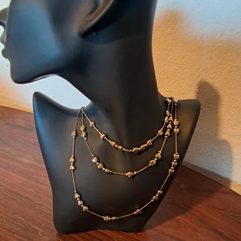 The necklace is in good condition with minor signs of use, but nothing that affects the overall appearance. The adjustable extension chain allows you to customize the length.