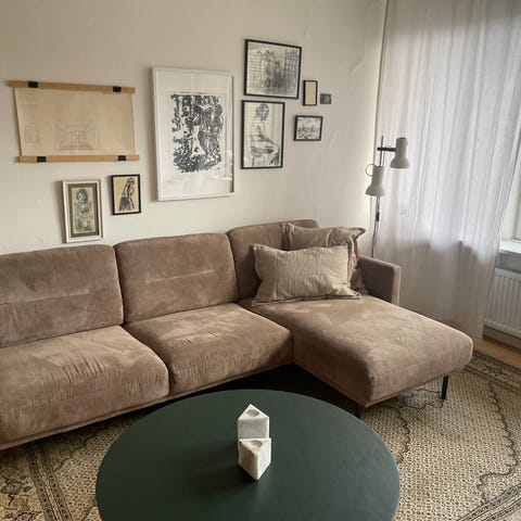 Sælger min sofa fra Ilva. Fløjl. Fra ikke/ryger og røgfrit hjem. Fra september måned, men min søn og jeg har desværre brug for noget større.