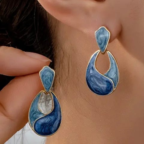 Blomster med fine hjerter og blød pastel blå emalje, 18K fyld forgyldt, stainless steel nål som skal i øret og størrelsen (25 x 28 mm) gør, at de skiller sig ud uden at være for vilde.