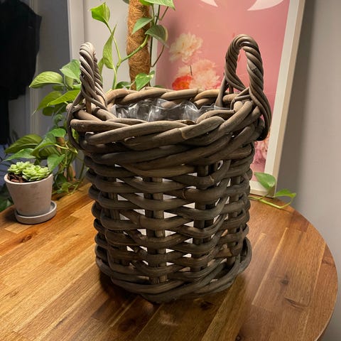 2 kurve, urtepotte, skjulere i træ påført flet af rattan. I perfekt stand flot i kvalitet . Højde 23 cm og 21x 21 cm