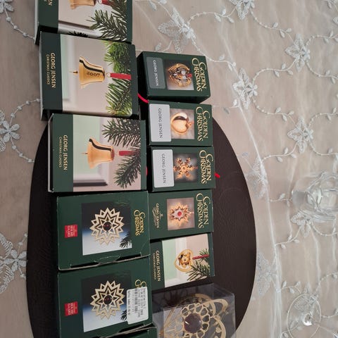 🎄 Georg Jensen – 24 stk guldforgyldte juleornamenter (ubrugte, komplet sæt)