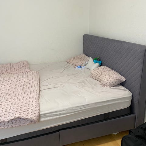 Juniorseng gives væk. Godt brugt og mangler 2 skruer i den ene ende - dette har ikke haft nogen betydning. Se billede. Er skilt ad. Madrassen medfølger ikke.