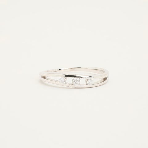 Trestensring med diamant (0.61 ct) i 18K hvidguld, str.