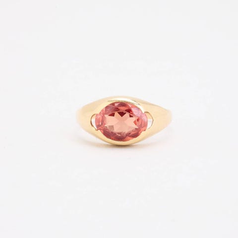 Signetring i 14K guld med en syntetisk safir, str. 54-Guld