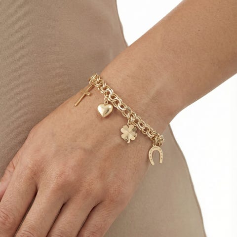 Bismarck charm-armbånd i 14K guld med røde sten, 19 cm-Guld