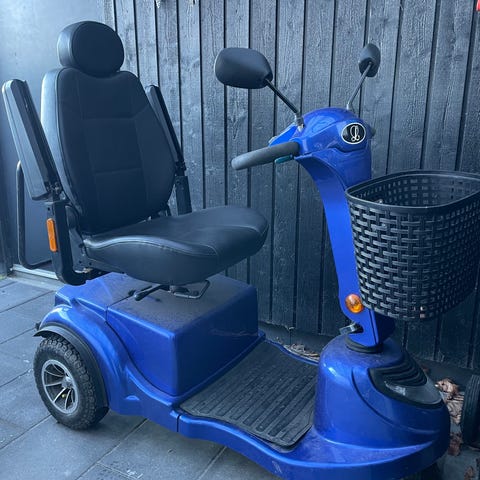 Tre hjulet rød Fønix 303 el-scooter med lader sælges, har ikke kørt ret meget og har altid stået indendørs