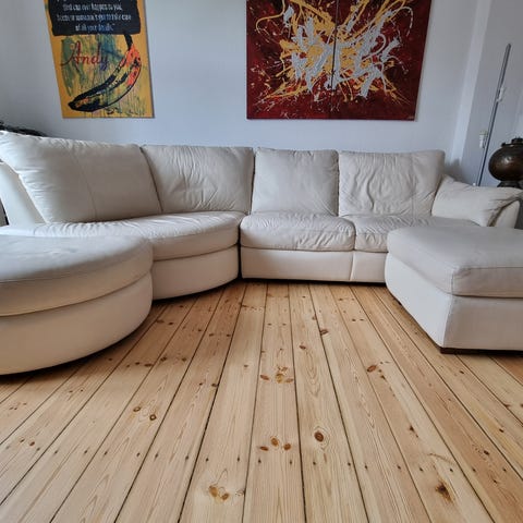 Lækker lædersofa i ubehandlet læder gives bort. Har få år bag sig, men har mange år i sig endnu.