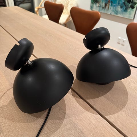 loftslamper, et par, "Flowerpot", VP1, hvid & rød emalje, 1970'erne.