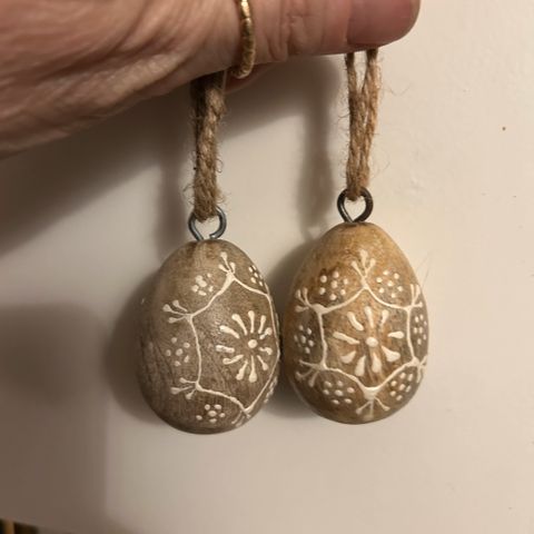 10 "æg" i fin stand. Nogle i træ og nogle i alabast ??. Det største måler ca 8,5cm