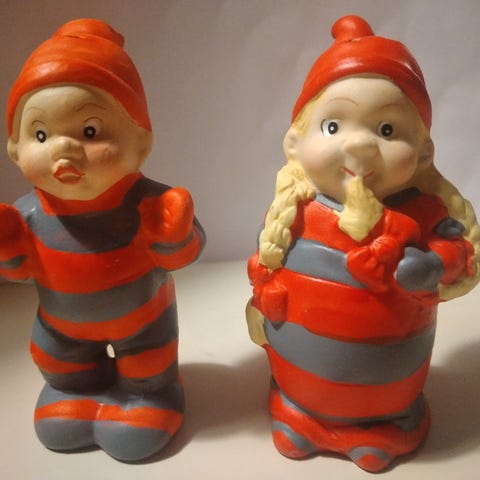 Pobra figurer, salt og pebersæt med kasse i fin stand julepynt / jul