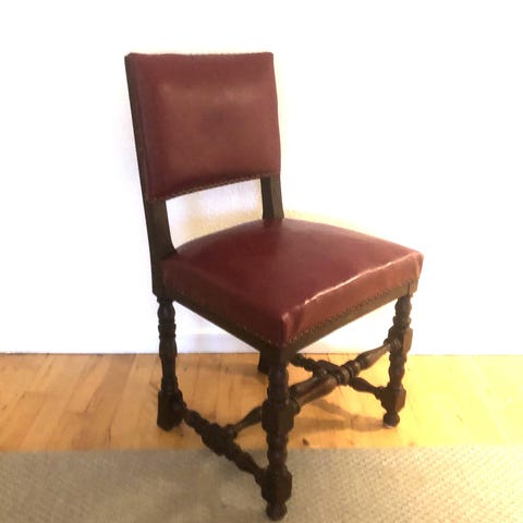 Kontorstol i valnød med læderbetræk, klassisk stilrent design, anden halvdel af det 20. århundrede.