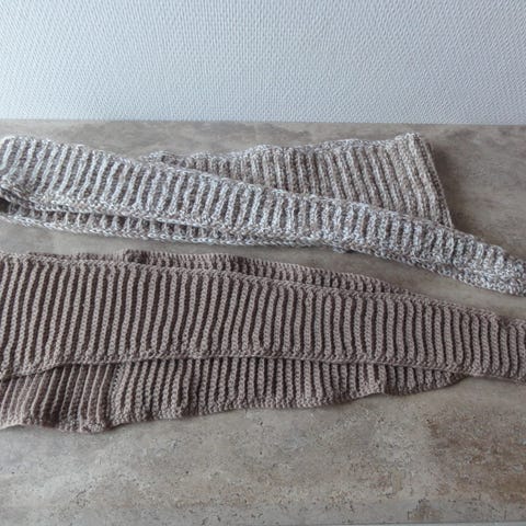 1 - trekantet ubrugt sjal håndstrikket af blød uld. Flotte mønstre. H 76 cm, L 190 cm.