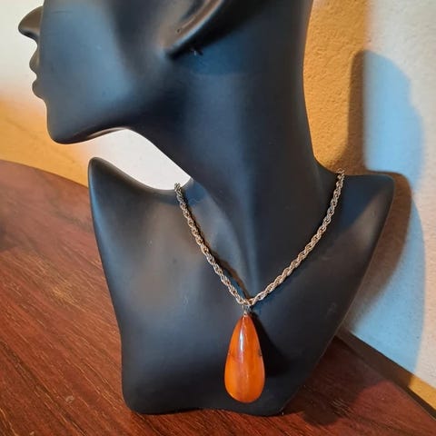 Condition: Good, with normal signs of wear on both the cord and metal parts. No visible damage to the pendant or the stone.