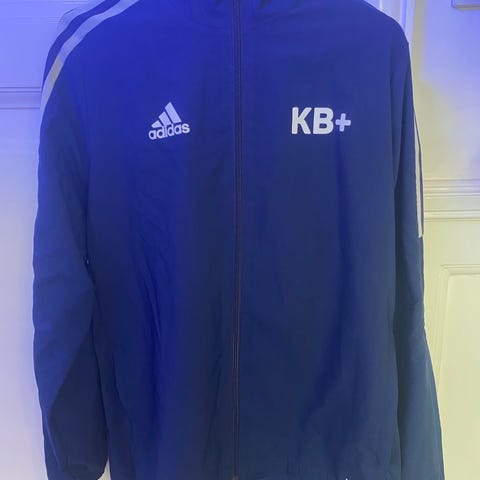 Windbreaker, Windbreaker, Adidas, str. ASuper flot KB+ windbreaker jakke. Let overtøj til den aktive fodboldspiller i farverne Blå/hvid. Str junior XLsvarer til 176 står der. Ikke brugt særlig meget. Fremstår flot. Der står Oli på mærket i nakken, men det kan man selv klippe af.