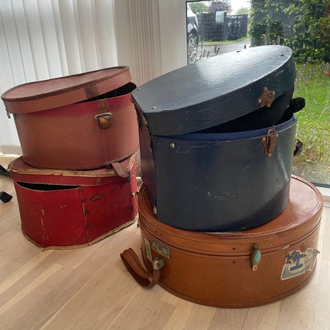HATTE ÆSKE, 80 år gl., GAMMEL HATTE ÆSKE MED SVENSK FRAGTMÆRKE.