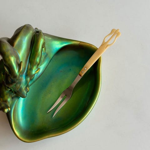 Smuk pålægsgaffel, udført i naturmaterialer i bl.a. horn.