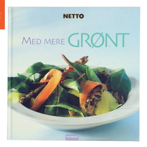 Netto Med Mere Grønt kogebog med fokus på grøntsagsbaserede opskrifter. Indeholder detaljerede instruktioner og billeder til tilberedning af forskellige retter med grøntsager som hovedingredienser.
