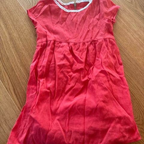 børnekjole i rød silke, one size, designet til piger. Str XS fra creme fraiche