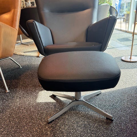 1 stk. Sort Semi-Anilinlæder med Sortlakkeret egetræsfiner og sort stålsokkel 360 grader