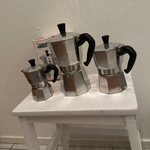 GEFU Moka kande i rustfrit stål med sort plastikhåndtag. Kanden består af flere dele, der kan skilles ad for rengøring og påfyldning. Designet til at brygge kaffe på komfur, induktion, gas og traditionel kogeplade.