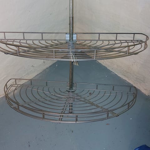 Forkromet kraftig karrusel til hjørneskab. Justerbar højde 63-85cm. 70cm i diameter