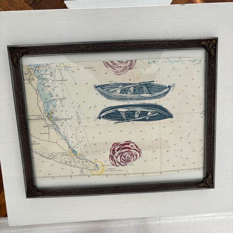 Billederamme, flot vintage ramme i træ. Tekst i bunden: En huslig scene. Mål: 29 x 31,5 cm.