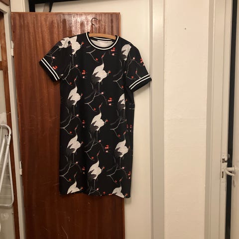 Noa Noa Hverdagskjole i sort farve, størrelse 42 til kvinder. Fremstillet i polyester materiale. Kjolen har et mønstret design og lange ærmer.