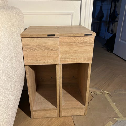 To små hvide kvadratiske sengeborde som ophænges - prisen er for begge
